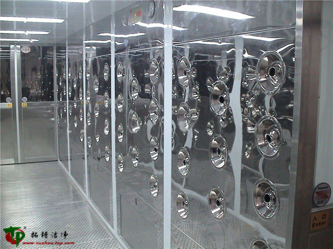 FLS系列風淋室采用彩鋼夾芯板制作,內表面鋁合金柜架,噴嘴板用彩鋼板或不銹鋼板組成,內裝照明燈,側面內部裝高效過濾器表面為可調噴嘴,下側為初效過濾器,兩門用鋁合金制作而成,結構新穎美觀,性能可靠,操作簡單,維修方便。 潔凈室內,在動態情況下,細菌及塵埃的主要發生源是操作者,當操作者進入潔凈室之前,必須用潔凈空氣吹淋其衣服表面附著的塵埃顆粒,并起到氣閥的作用,本公司生產的FLS系列風淋室可以達到明顯的效果。本系列產品規格較多,用戶可以根據廠房布置、工藝要求選擇合適的風淋室。